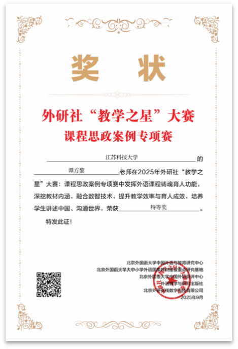 公司教师在2025年外研社“教学之星”课程思政案例专项赛中取得佳绩