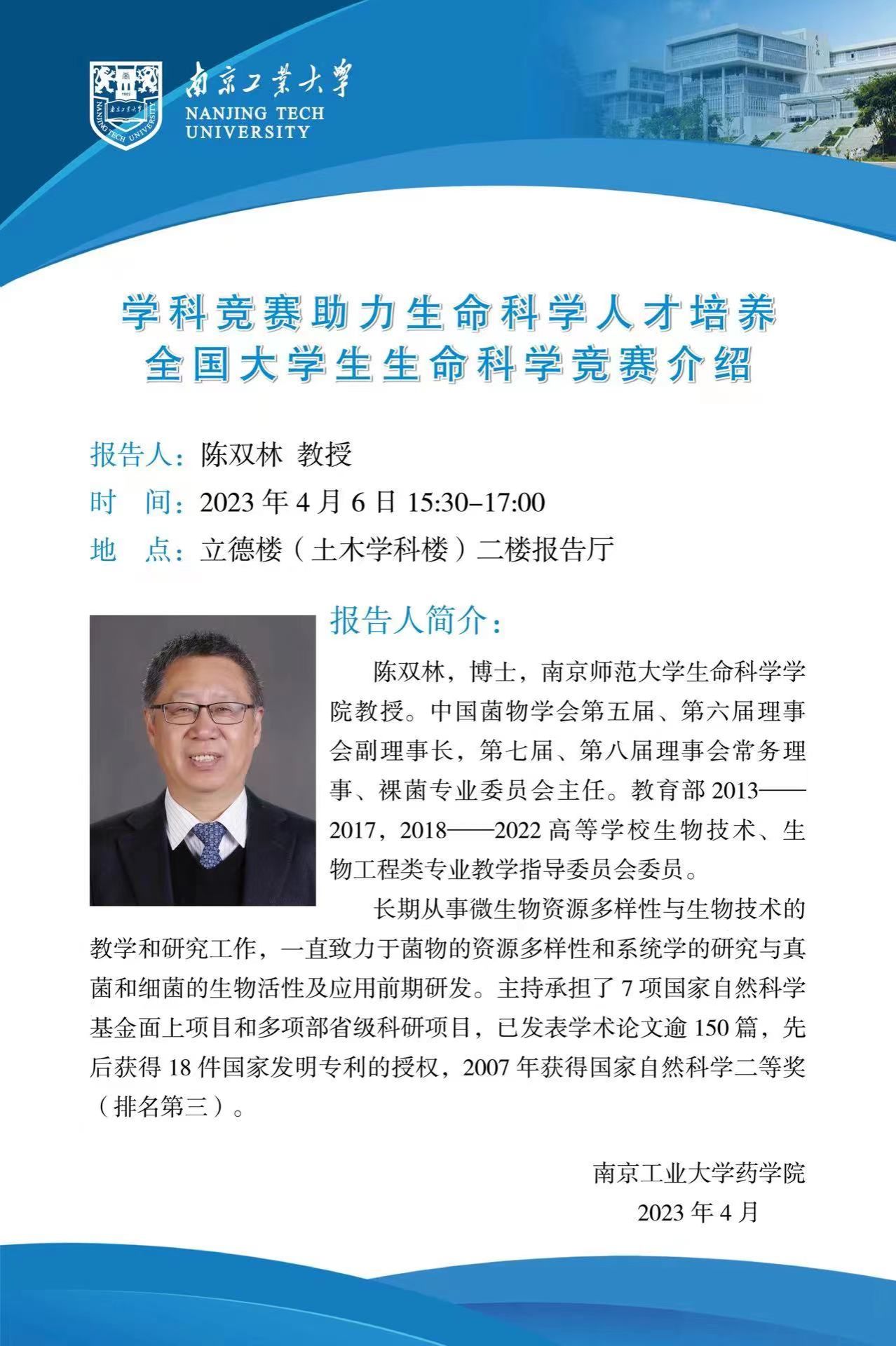 学术报告:学科竞赛助力生命科学人才培养