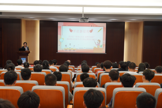 教师代表年彬彬老师发言,他从自身科研经历出发,与在座的2023级新生同学们分享了自己的心路历程。他希望同学们作为00后的新生代力量,珍惜并用好学校和学院提供的优质资源,坚持奋斗,追逐梦想,保持身心健康,绽放绚丽青春。