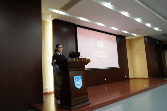 23级新生药剂2302班马侨敏代表本科新生发言,表示将在未来的学习生涯中,保持胸怀大我、孜孜不倦、直面未知的精神,努力做勇于担当的追梦人,做锲而不舍的药学人。