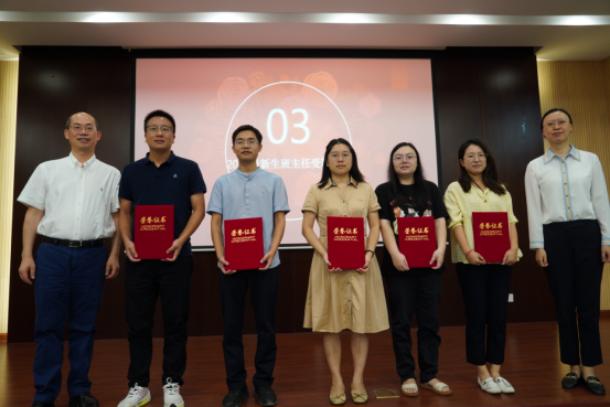 随后,举行新生班主任聘任仪式。王飞、李学明为五位本科生新生班主任颁发了聘书。班主任们将发挥自己的专业优势和教育经验,积极引导和指导员工,帮助他们在大学期间取得更好的学习成绩、学术成果和个人发展。