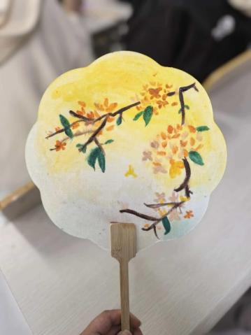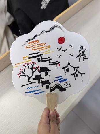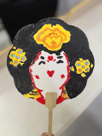 活动现场,工作人员早已备好丰富的创作材料 —— 五彩画笔、各色颜料,搭配空白面具、素面扇子等多样载体,让同学们可以随心所欲选择创作工具。