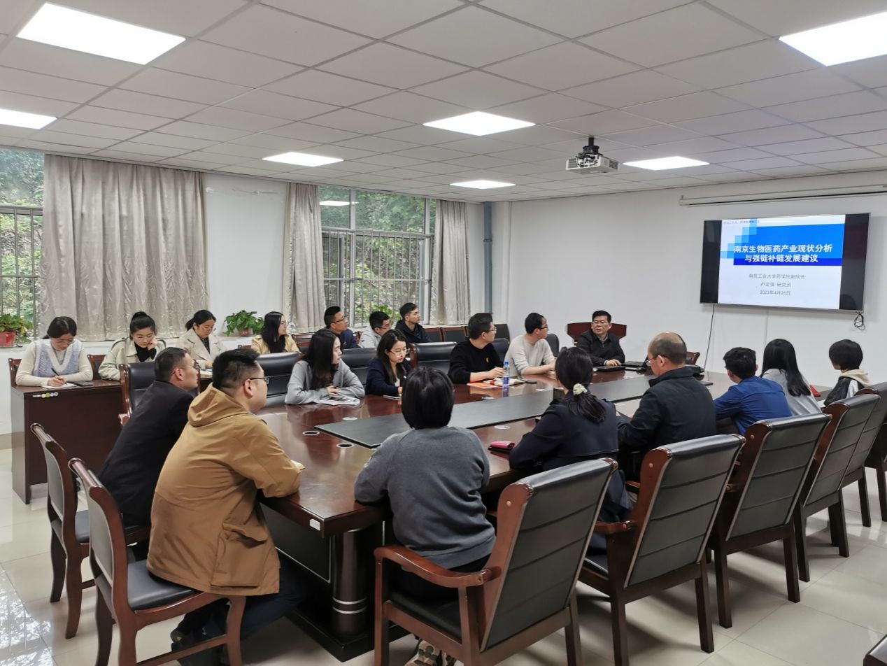 副经理卢定强教授以“南京生物医药产业现状分析与强链补链发展建议”为题作专题讲座。他围绕学习贯彻党的二十大精神,从二十大报告关于人民健康的重要论述、生物医药产业发展现状与思考、产学研协同创新、青年人才成长等方面,对青年教师进行指导。与会教师就科研选题、产教融合、人才培养等开展交流研讨。