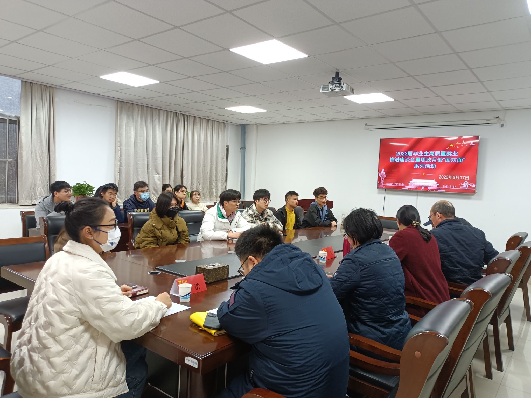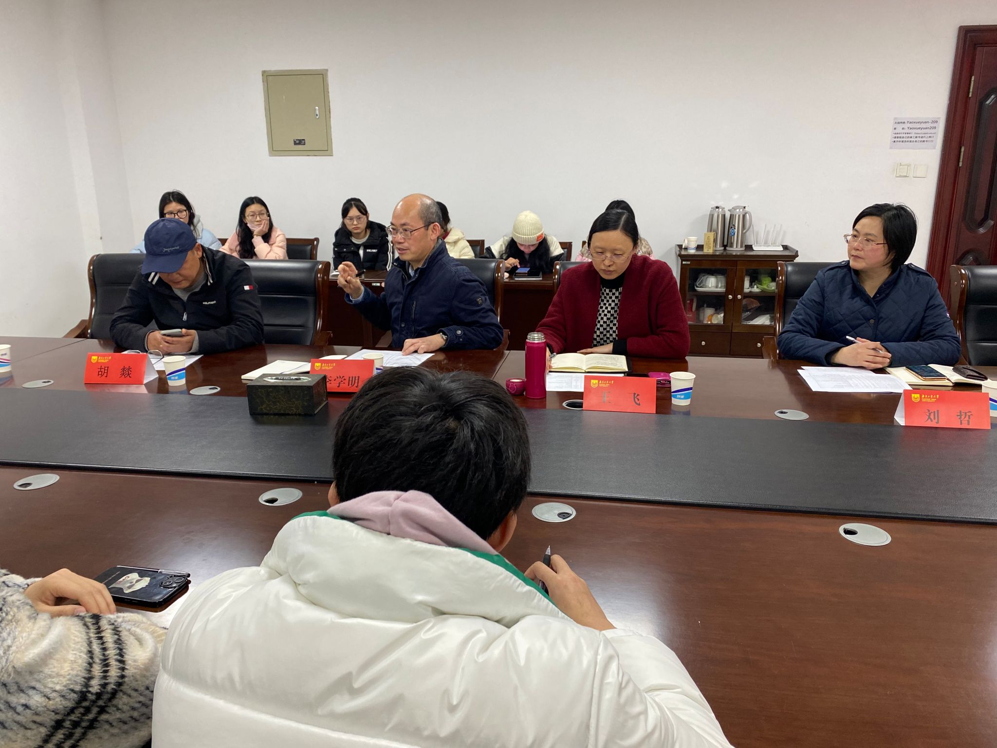 与会老师与考研员工进行了深入交流,刘哲副书记分析2023届毕业生考研初试情况,重点分享往届员工调剂院校、调剂分数等重要信息。老师代表胡燚教授、任浩教授悉心回答现场员工提出的各类问题,对复试细节进行耐心指导,答疑解惑,鼓励同学们以更加积极的姿态联系学校和导师。辅导员吴雨婷老师鼓励调剂员工积极主动出击,为考研员工做好更为精准化的服务。