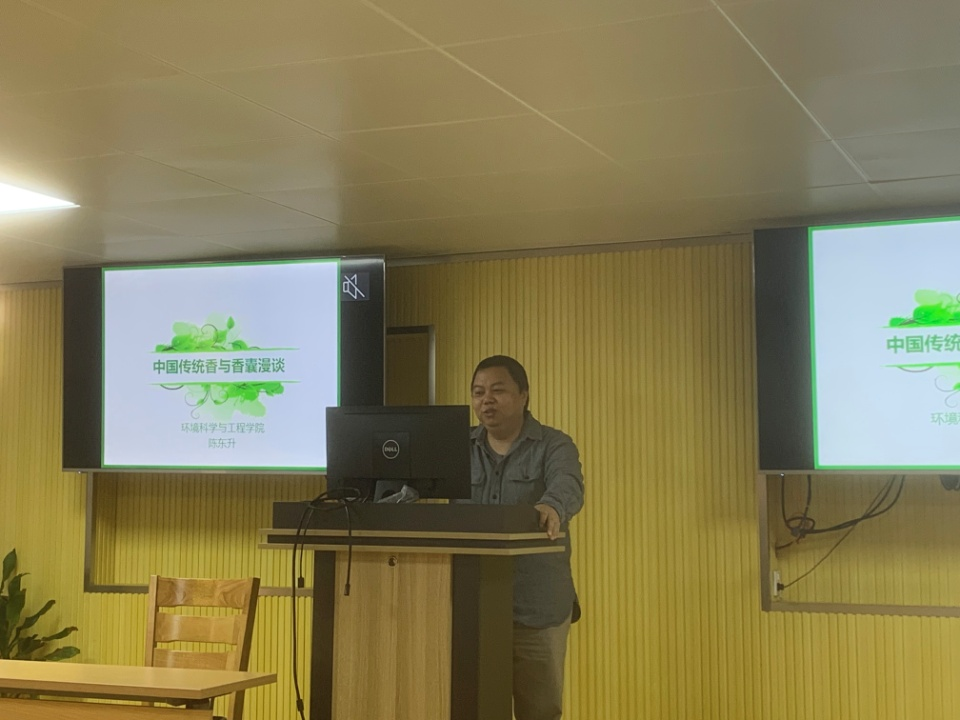 环境学院陈东升老师做了题为《中国传统香与香囊漫谈》专题讲座。陈老师从中国古诗词中的“香”讲起,旁征博引、幽默生动的给在座老师介绍了我国历史悠久的香文化。