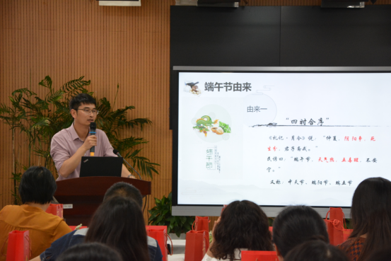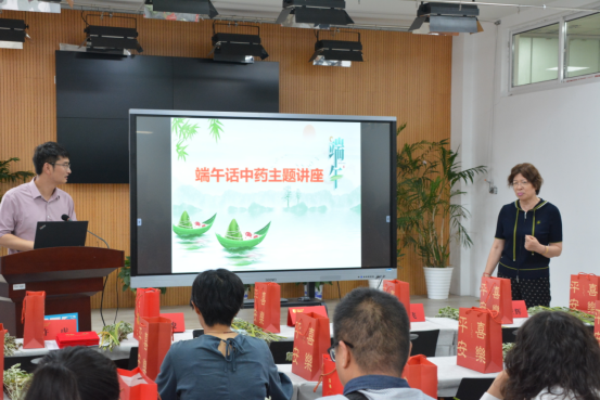 院工会主席刘哲热情洋溢地介绍活动背景,引用《诗经》等典籍中的名句对艾草进行了介绍。活动邀请江苏卫生健康职业学院、中医药专家许虎老师作主题为《端午话中药》讲座。他从节气、习俗、药用等方面详细讲解端午的由来,讲解生艾叶、藿香、紫苏叶、佩兰、石菖蒲等中药材的用途和中药文化故事,风趣幽默间了解到中医药的博大精深。在漫谈交流中药文化环节,何冰芳教授和王永禄教授等对生活和科研中遇到的中医药问题与嘉宾进行深入探讨。
