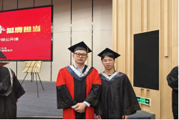 典礼最后,教授代表为全体2024届毕业生正冠、拨穗并合影留念,帽穗从右侧拨至左侧,标志着同学们顺利完成学业,即将踏上新的征程。