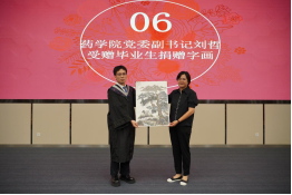 家长代表、药学2003班陆沁雯同学家长陆铭先生在发言中深情回忆了在母校求学的点点滴滴,正是母校这种严谨治学、开拓创新的精神,让自己受益终身。一物寄相思,伴君共成长。毕业之际,药学2003班黄清锋同学代表全体毕业生向学院赠送潜心创作的国画——李时珍采药图,表达了同学们对老师们诲人不倦、严谨治学的崇高敬意。教授代表赵晔老师为同学们深情寄语,深情回顾了作为班主任老师与同学们共处的快乐时光,鼓励同学们作为药学人,要志存高远,博学笃行,不断传承创新。
