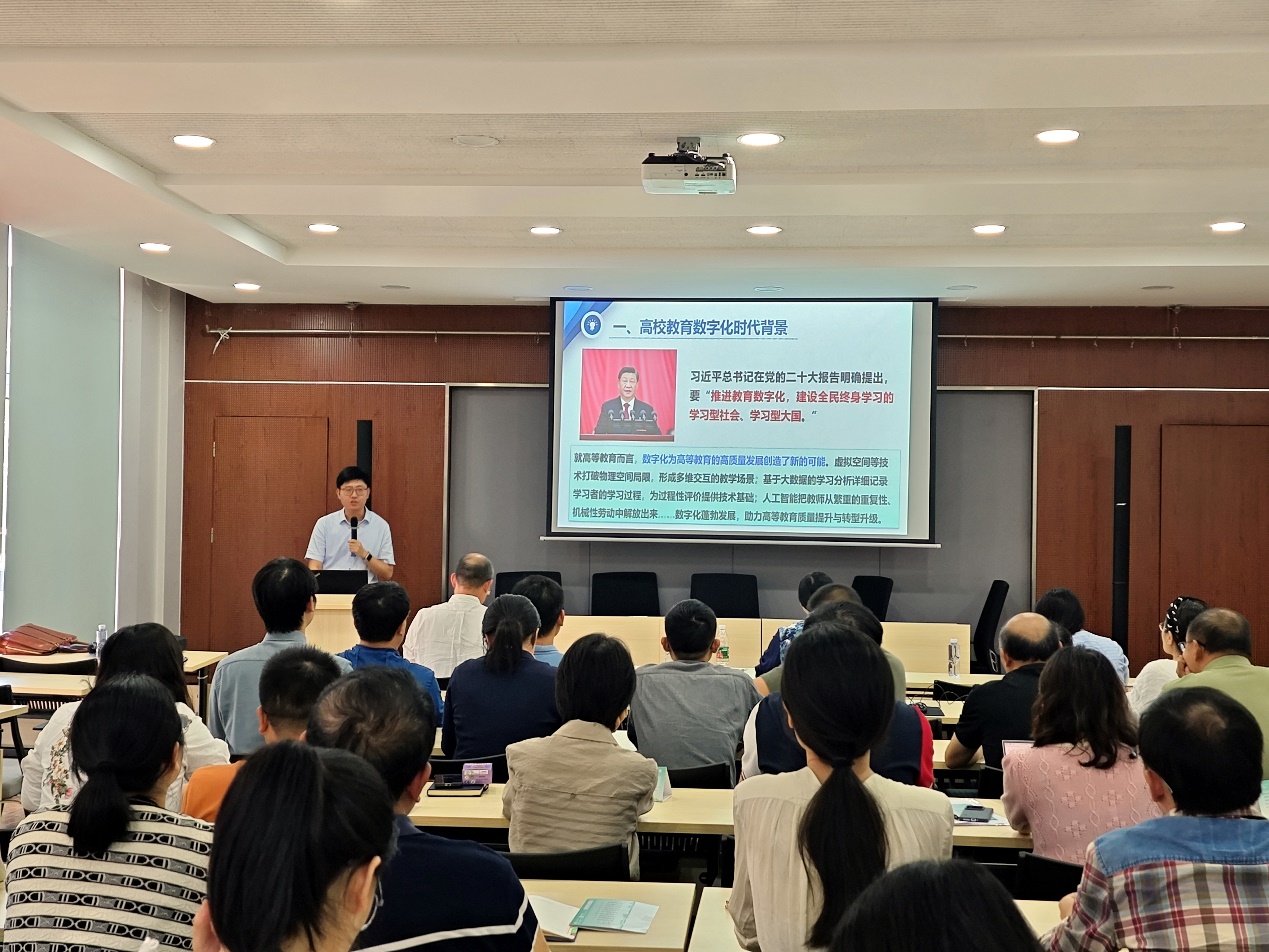 会上,学习了习近平总书记在党的二十届三中全会和全国教育大会上的重要讲话精神。刘睿副处长作“教育数字化背景下高校课程建设的探索与教学改革实践”专题报告。他从高校教育数字化的时代背景出发,分析了课程建设数字化改革的理念,分享了数字赋能课程改革的精彩案例,提出教学改革的思考和建议,为公司教师在教育数字化背景下推进课程建设和教学改革打开了思路,提供了理论和实践参考。