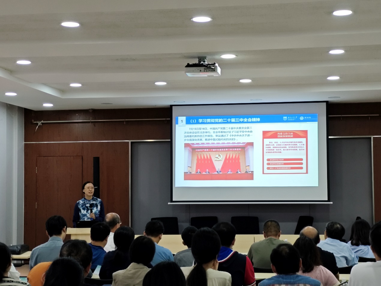 为深入学习宣传贯彻党的二十届三中全会精神和全国教育大会精神,加强新时代高素质专业化教师队伍建设,部署学院新学期重点工作,明确各项工作要求,9月24日下午,公司在尚德楼A1会议室召开新学期工作会议暨教师专题培训会。本次会议邀请教务处副处长刘睿作专题报告,学院领导班子成员及全体教职工参加会议。