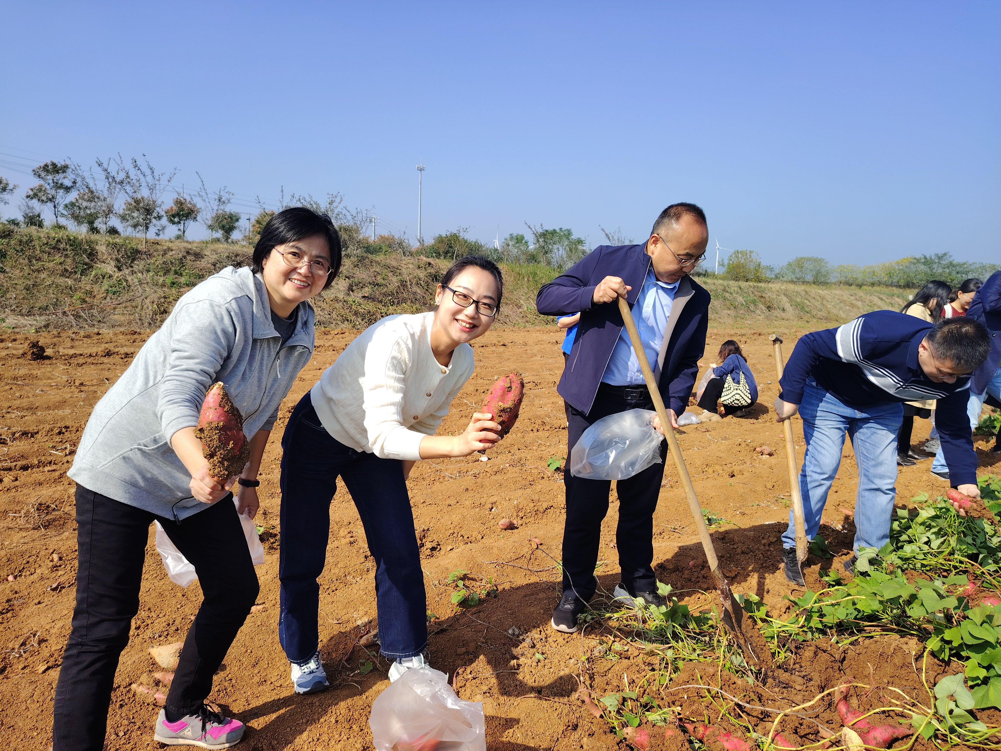 教职工首先参观了位于位于南京市六合区的竹镇市抗日民主政府纪念馆,了解抗战历史、重温革命精神。接着来到了农场,开展了秋日农耕,“薯”你最棒挖红薯活动,老师们两人一个小组,一人挥锹,一人分拣,热火朝天,体验了劳动的辛苦与收获的喜悦。最后,通过“筑梦新征程”答题活动和“南泥湾大丰收”趣味活动,系统回顾了建党百年的历史,锻炼了团队的沟通协调和合作探索的能力。