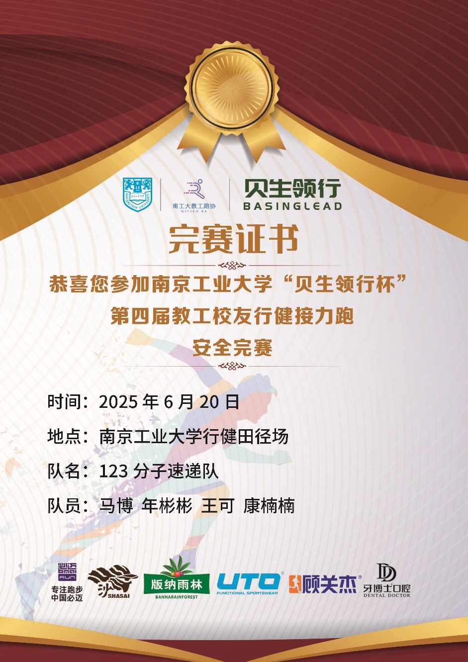 比赛中,四位老师默契配合,以平均4分40秒/公里的优异成绩完成12.3公里赛程,较日常训练提升30%,展现了BETWAY必威教职工拼搏进取的精神风貌。