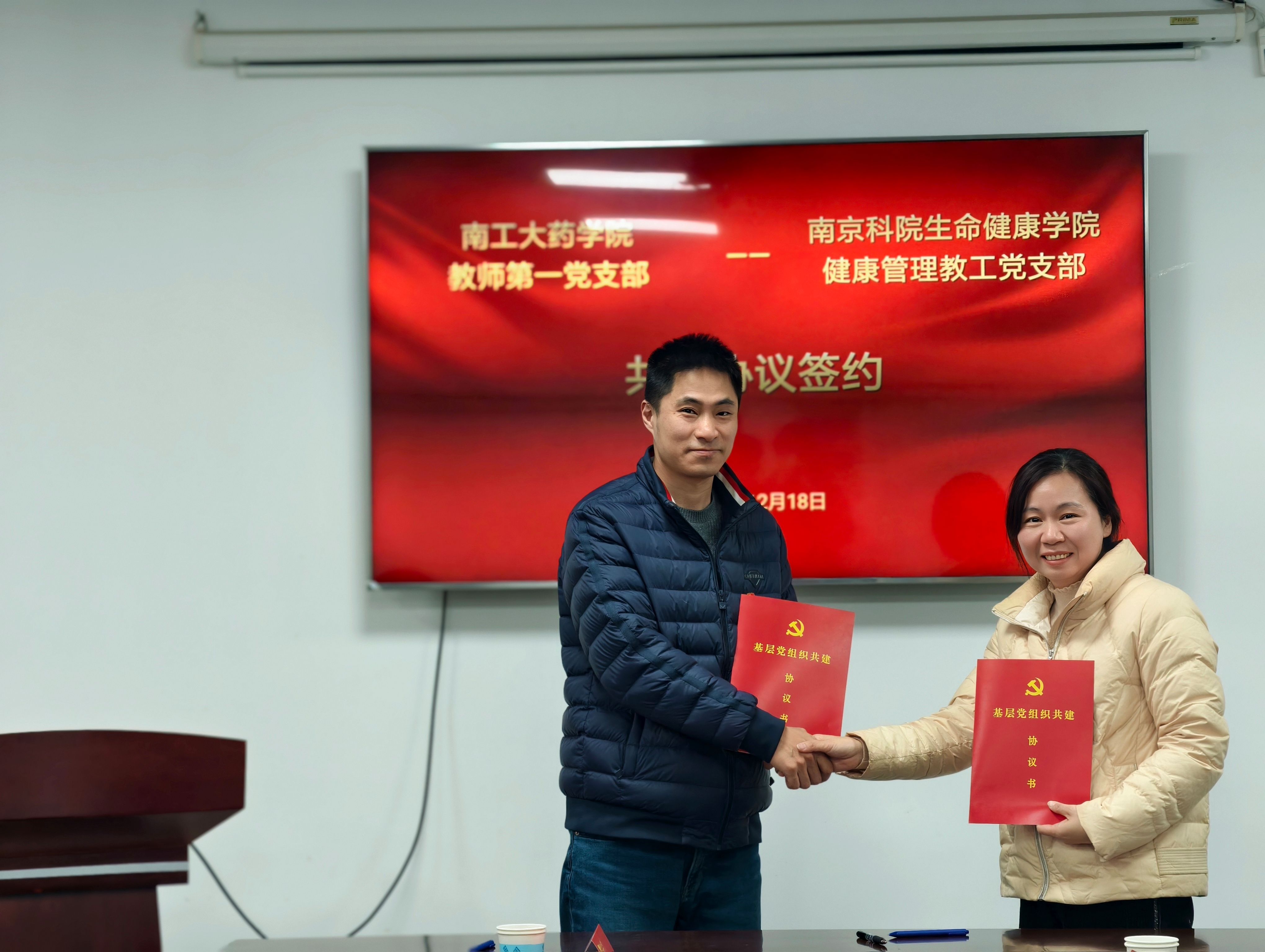 李学明、吴晓云分别介绍学院建设发展情况。BETWAY必威教师第一党支部书记任丽莉和南京科院BW必威西汉姆联官网健康管理教工党支部书记常思源签订支部党建共建协议。