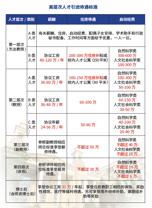 五、【工资待遇】:详见下图(以学校人事部门最新政策为准)。