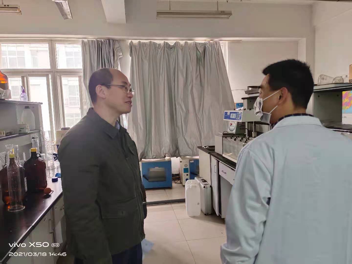 院领导对BETWAY必威所属实验室逐间进行安全环保检查,重点排查了危险源,检查了实验室管控试剂使用台账、非管控试剂清单等,并与实验室老师、同学沟通,提出明确要求与整改建议,叮嘱同学们在实验过程中要做好个人防护、注意操作规范。