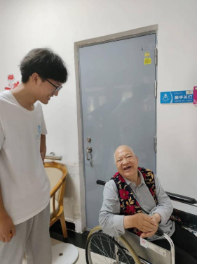 陪着老人们看电视、下象棋、与他们散步、唠家常,帮他们做日常健康检测,分享自己的专业知识。不知不觉间,时间似沙流失,短暂的相处,既给老人们带来了快乐,充实了他们的生活,也给我们带来了巨大的满足感,增强了社会责任感,提高了自身价值感。亲身加入老人的生活,更觉精神上的富足远比物质上的更重要,所以,要在还来得及的时间里多陪陪自己的奶奶外婆,永远记得比起昂贵的礼物,他们可能更需要一个飞奔向他们的拥抱。“老吾老以及人之老”,愿每个人在力所能及的情况下都能向身边的老人伸出援助关怀的手。