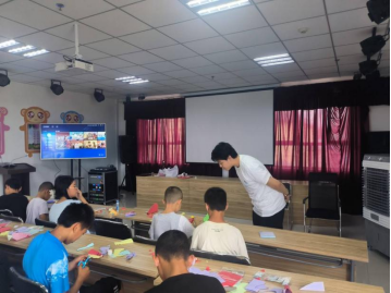 接着,志愿者们前往儿童部,陪伴他们上了一趟轻松自在的手工课。课堂上孩子们积极动手,跟随小老师的指引,一步一步折叠出令自己满意的小作品,偶有闹腾的小同学,也会在志愿者的指引下进入课堂的学习氛围中。课间休息后,孩子们一起前往操场开展了户外篮球课,不大的小孩抱着圆滚滚的篮球学着志愿者的姿态将球轻轻拍着,整个操场充满着孩童的欢笑声和志愿者嘹亮的教导声。