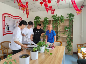 志愿者们首先来到了老人部,陪伴老人写书法、画画、下象棋、聊天,在护工的陪同下宣传安全用药知识。老人们和我们的志愿者聊起生活起居,称赞在中国共产党的领导下,他们过上了幸福安详的晚年生活,鼓励员工们在校努力学习文化知识,毕业后为家乡建设贡献力量。志愿者将带来的牛奶、水果和面包等慰问品递给老人,并亲切地询问老人的身体和生活状况,叮嘱老人要时刻注意身体。