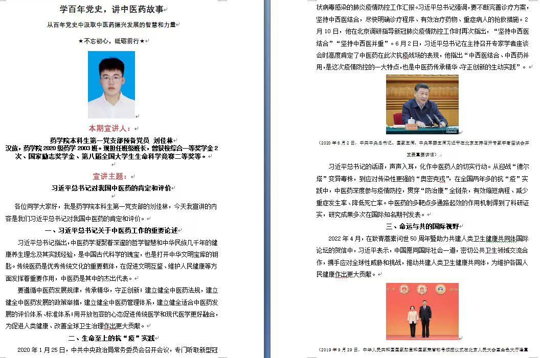 活动以支部为单位,结合党史学习,宣讲建党以来与中医药有关的红色故事。本次征集活动持续了半个月,支部成员积极参加,共收到宣讲稿31份,评选出一等奖4名、二等奖5名、三等奖8名。