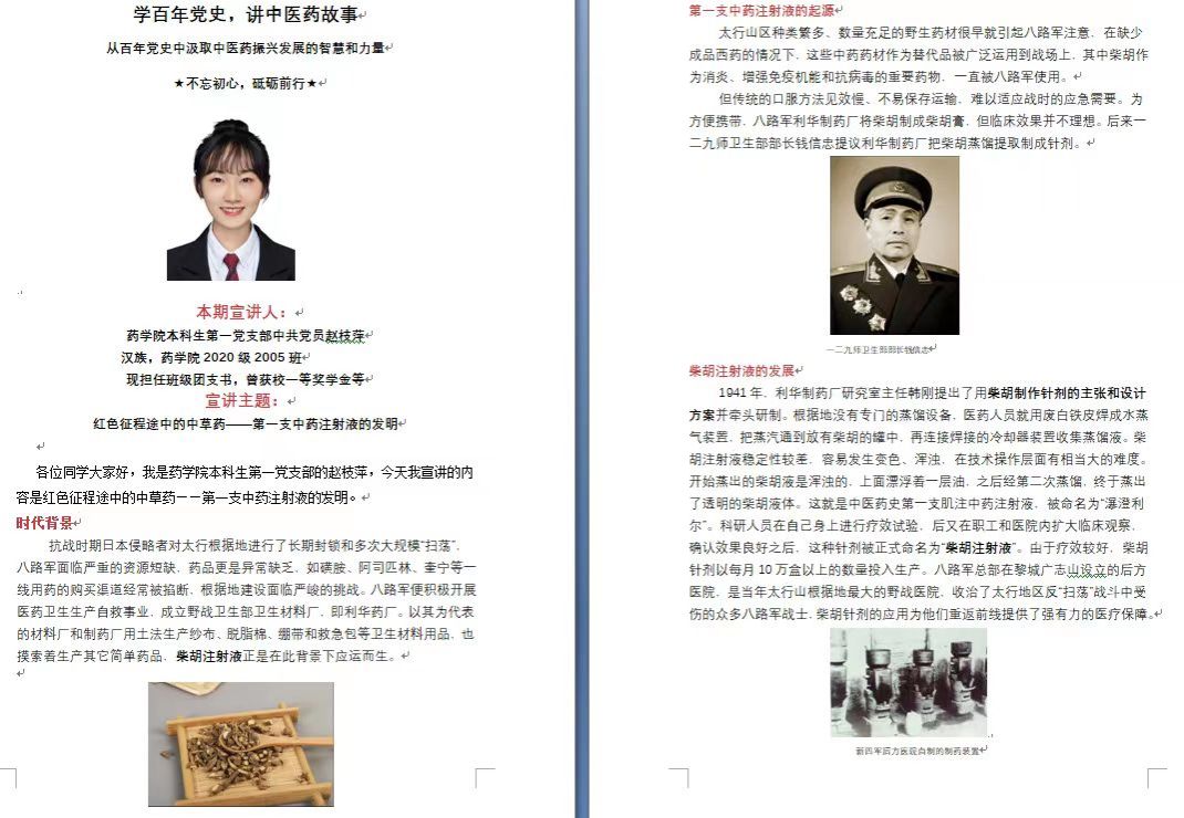 近日,BETWAY必威本科生第一党支部结合学科特色,开展“党史上的中医药故事”微宣讲活动。